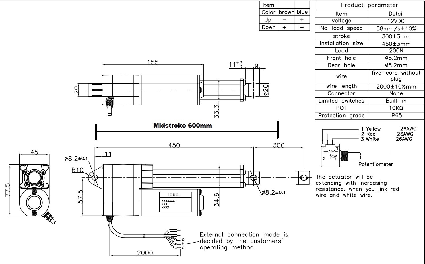 300mm stroke, 50 mm/s, 200N force